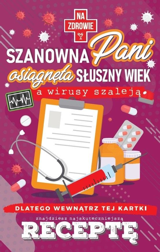 Karnet JCX z receptą to wyjątkowy pomysł na sprawienie obdarowanemu nim wesołej i niebanalnej niespodzianki. Wykonane z wysokiej jakości grubego papieru o gramaturze 350g i uszlachetnione dającym połysk lakierem UV. Wewnątrz karnetu znajduje się dedykowana recepta wzorowana na oryginalnym druku, którą wypełniają goście. Oryginalne i wesołe teksty zaskoczą każdego jubilata i z pewnością wywołają uśmiech na jego twarzy. Karnet może być idealnym dodatkiem do każdego prezentu. Karnet zawiera również humorystyczne życzenia.