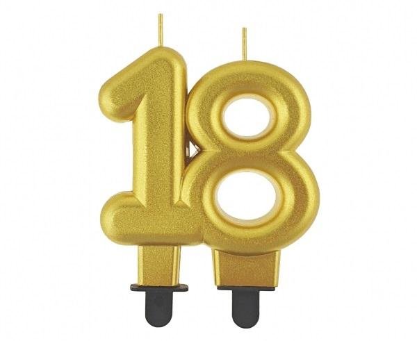 Svíčka narozeninová číslice 18 metalická zlatá 8 cm