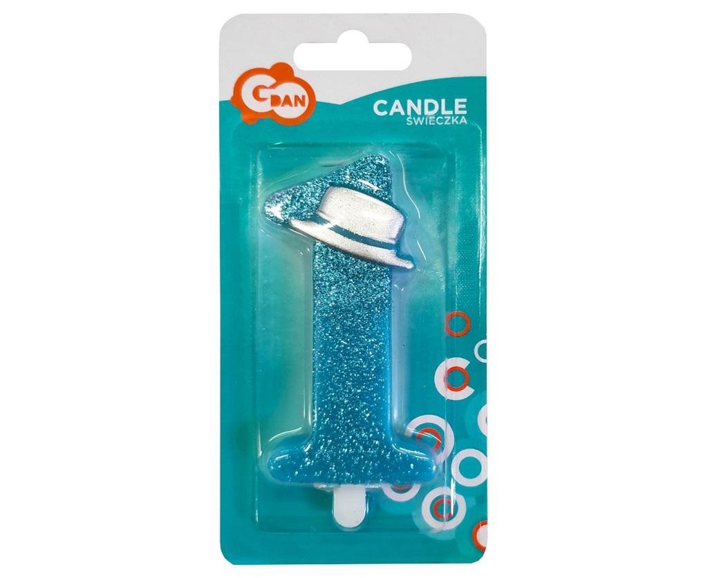 Narozeninová svíčka 1 ve třpytivé modré barvě a kloboučkem. Velikost: 9 cm. Balení: 1 ks. číst celé