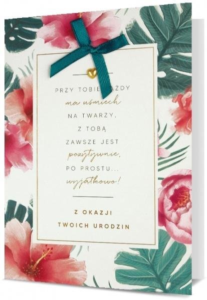 Pięknie zdobiony karnet okolicznościowy B6 z kopertą i życzeniami.Brokat, przestrzenne aplikacje, złocona folia. číst celé