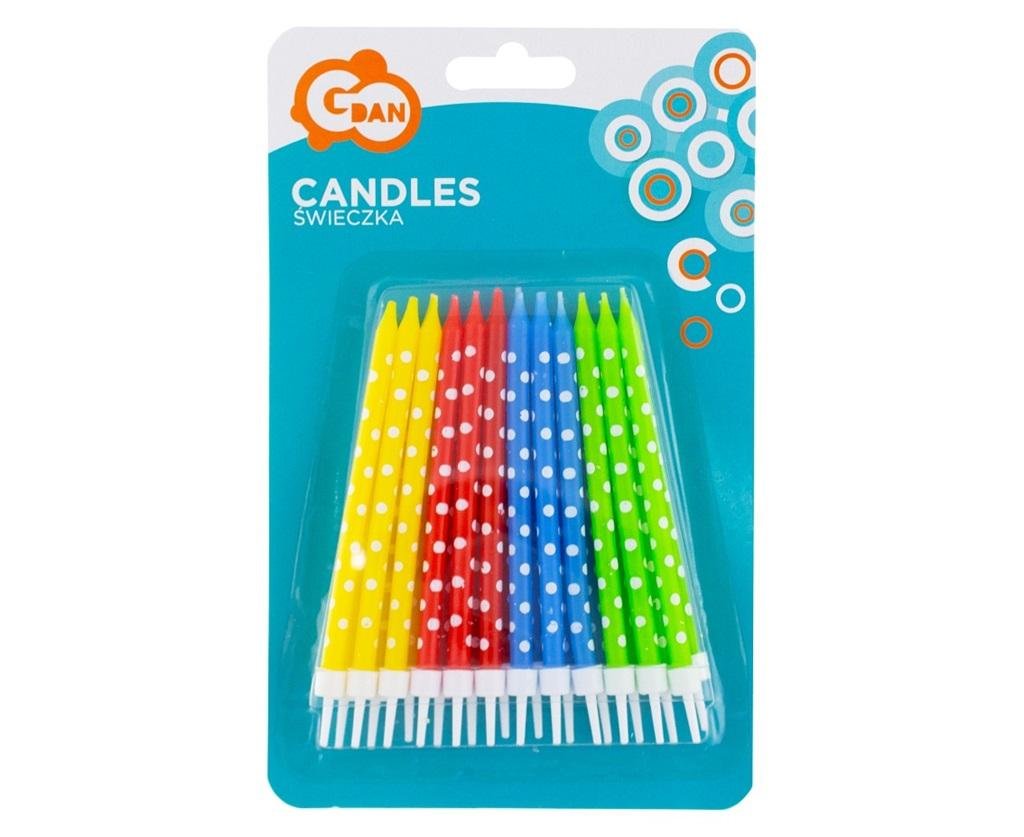 Dortové svíčky dlouhé v krásných barvách opatřené puntíky. Udělají radost každému oslavenci, nejen dětem. Rozměr: 11 cm. Balení: 24 ks. číst celé