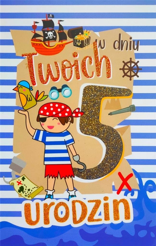 Karnet 2k. Klasyczny karnet na dziecięce urodziny. Uszlachetniony lakierem brokatowym. Karnet zawiera życzenia. číst celé