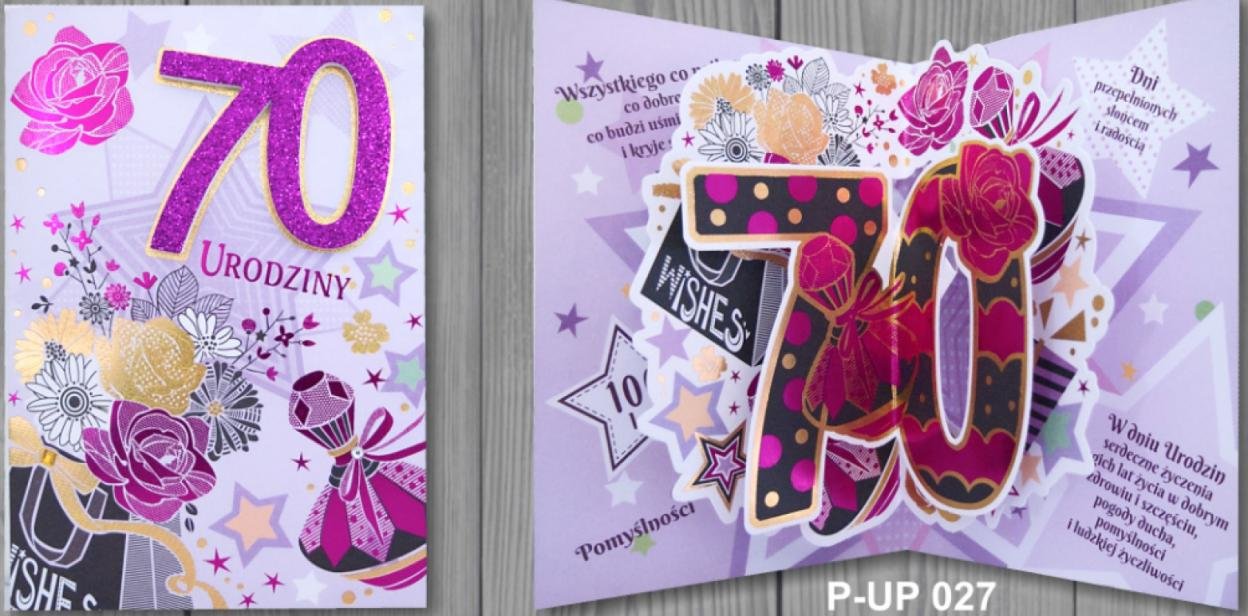 Karnet z kopertą Przestrzenny Premium B6 Urodziny 70 kobieta P-UP-027 Panorama číst celé