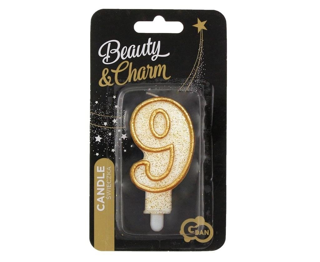 Świeczka CYFRA 9 urodziny, złoty kontur