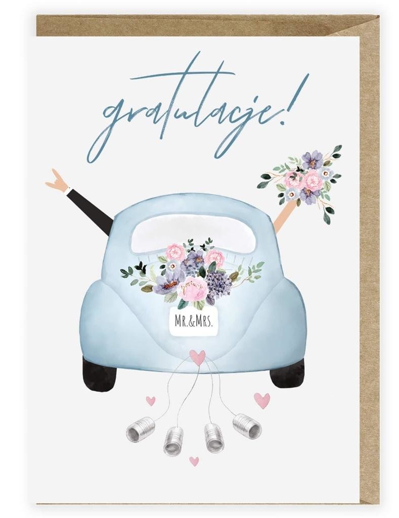 Kartka ślubna, eko koperta Samochód ślubny K108