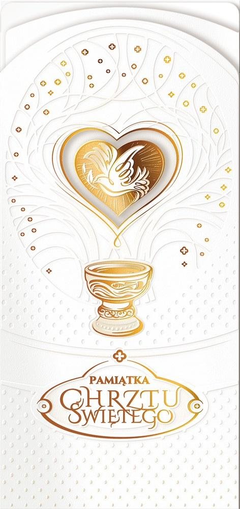 Piękna kartka na Chrzest bogato zdobiona, wykonana na papierze ozdobnym satynowym: