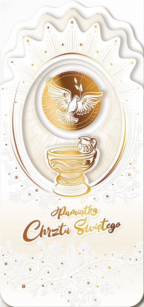 Piękna kartka na Chrzest bogato zdobiona, wykonana na papierze ozdobnym satynowym: