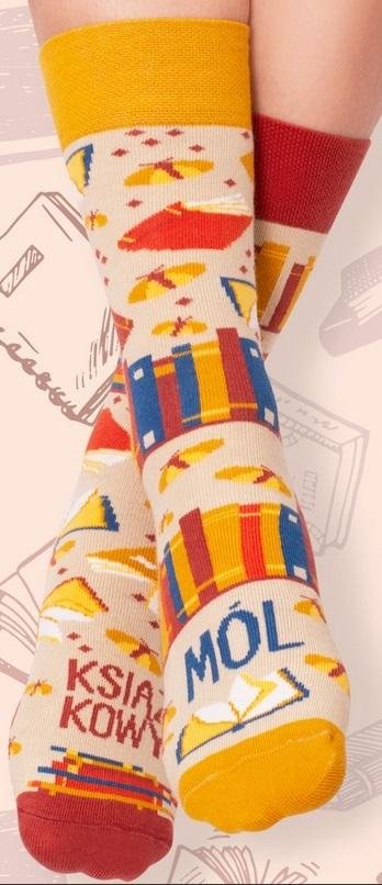 Oryginalne literackie skarpetki MÓL KSIĄŻKOWY to nieodłączny element stylizacji każdego książkoholika oraz idealna propozycja na prezent dla polonisty i miłośnika literatury. Polecamy je w zestawie z kubkiem MÓL KSIĄŻKOWY i koniecznie z dobrą książką!