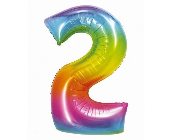 Balon foliowy cyfra 2 tęczowa Smart 76cm
