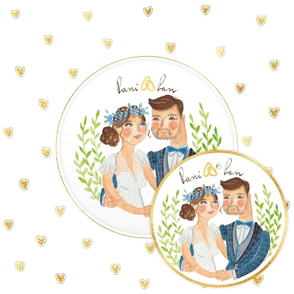 Karnet kwadratowy w formacie 15 x 15 cm z wyciętym kółkiem. Złocony i tłoczony, teksy życzeń w środku. Wydrukowany na wysokiej jakości papierze. W zestawie bilecik do prezentu oraz koperta.