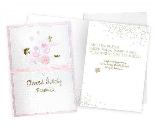 Karnet Dream Cards Plus "Chrzest" w powiększonym tzw. Angielskim formacie 140x190 mm. Kartka z ozdobnej serii Dream Cards Plus robi wrażenie dzięki atrakcyjnej kolorystyce i ciekawym zdobieniom. To idealny wybór łączący przyjazną cenę z jakością. Cechy szczególne: wielkość: 145 x 195 cm po złożeniu kopertą, wnętrze: kolorowe, wyjątkowe życzenia w środku, w komplecie: dopasowana kolorystycznie koperta. zdobienia: różnorodne, bogate (w zależności od wzoru: przyklejane dekoracje, elementy biżuteryjne, odstawniki, brokat, metaliczne folie, tłoczenia itp.), okazja: chrzest