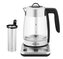 objem 1,8 l, kvalitní nerezové provedení - materiál SUS 304 a sklo, 360° otočná základna s LED světlem a možností nastavení teploty, dechlorace vody, sítko na čaj, funkce udržování teploty, STRIX konektor, ochrana proti přehřátí při zapnutí bez vody, skryté topné těleso, příkon 1850 - 2200 W,