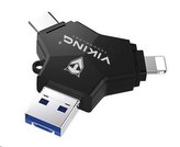 Viking USB Flash disk 3.0 4v1 s koncovkou Lightning/Micro USB/USB/USB-C, 128 GB, černá