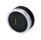 Viking zásuvkový modul A60, 1x USB-A, 1x USB-C, PD, stříbrno-černá