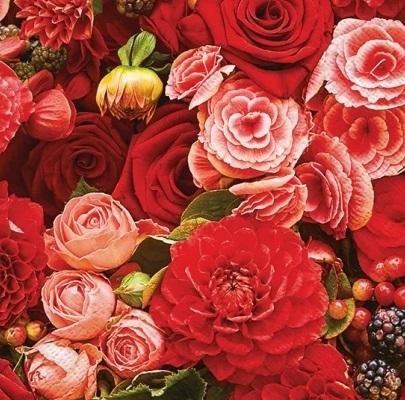 Serwertki Czerwony Bukiet 33x33cm 20szt