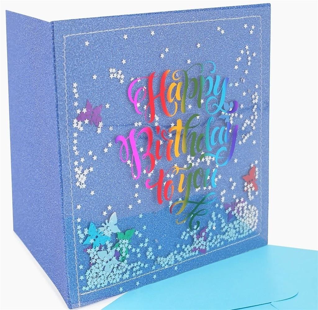 Karnet kwadrat NMH-003 konfetti Urodziny niebieski