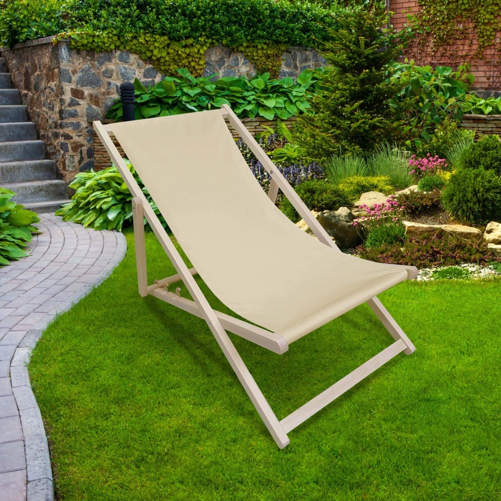 Zahradní skládací lehátko vyrobené z prvotřídního broušeného bukového dřeva nejvyšší kvality, potažené nepromokavou tkaninou odolnou proti povětrnostním vlivům. Ideální na zahradu, terasu, k bazénu nebo na rybaření.