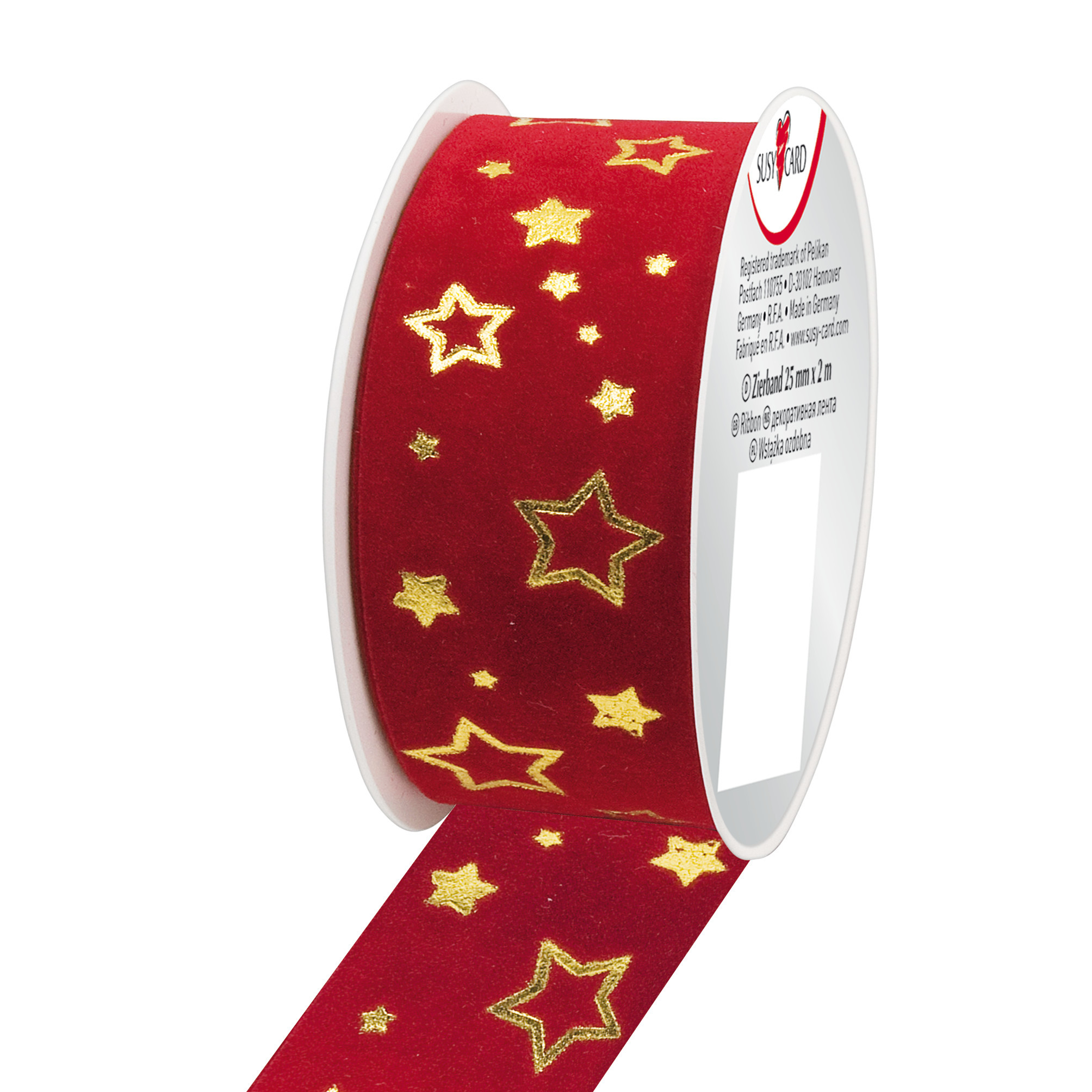 Stuha textilní 2mx40mm, červená s hvězdami