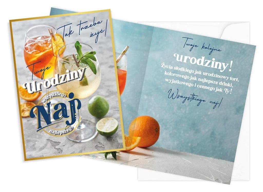 Karnet Vision w powiększonym tzw. Angielskim formacie 140x190 mm. Wykonany z niezwykłą dbałością o szczegóły, zdobiony złotą, matową folią. Wewnątrz znajduje się tekst życzeń, a całość uzupełnia dopasowana kolorystycznie koperta. okazja: Urodziny číst celé