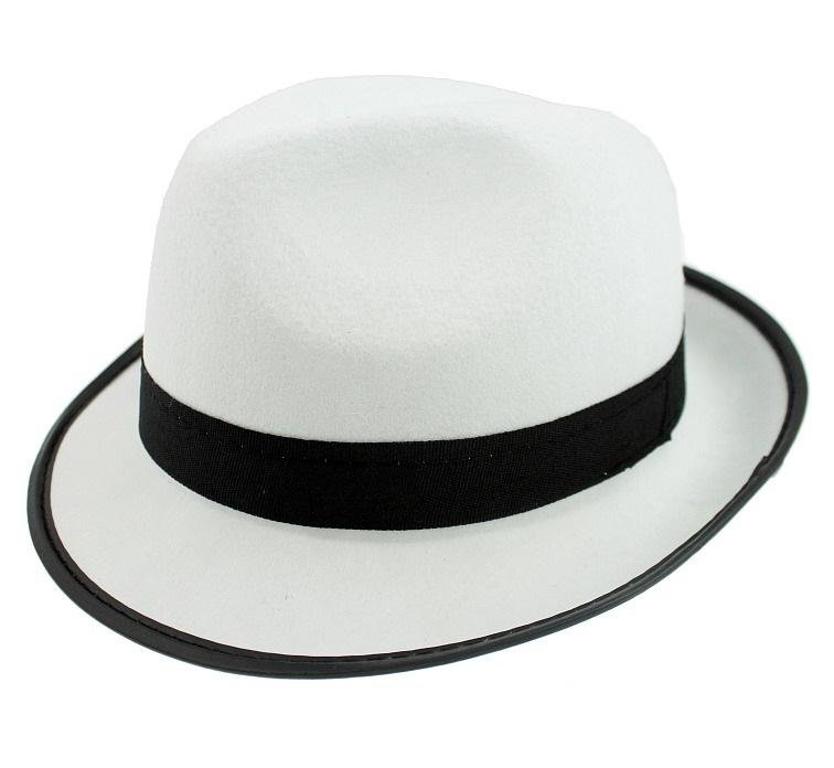 Mafiánský klobouk bílý, s černým lemováním a černou stuhou číst celé