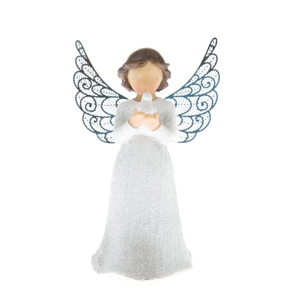Polyresinový anděl s ptáčkem s kovovými křídly, 3/108
