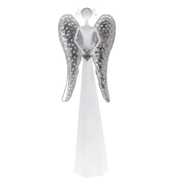 Kovový anděl se srdcem, s LED světlem, 12/24