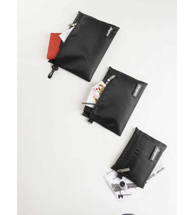 Set 3 ks cestovních pouzder. Ideální pro uložení cestovních dokladů, nabíječky a jiných drobností.Sada obsahuje 3 různé velikosti pouzder.Z omyvatelného materiálu, snadná údržba.Barva - černá. Materiál - 100% polyester. Rozměry - S: 19,5 x 14,5 cm; M: 22 x 18,5 cm, L: 29,5 x 22 cm.