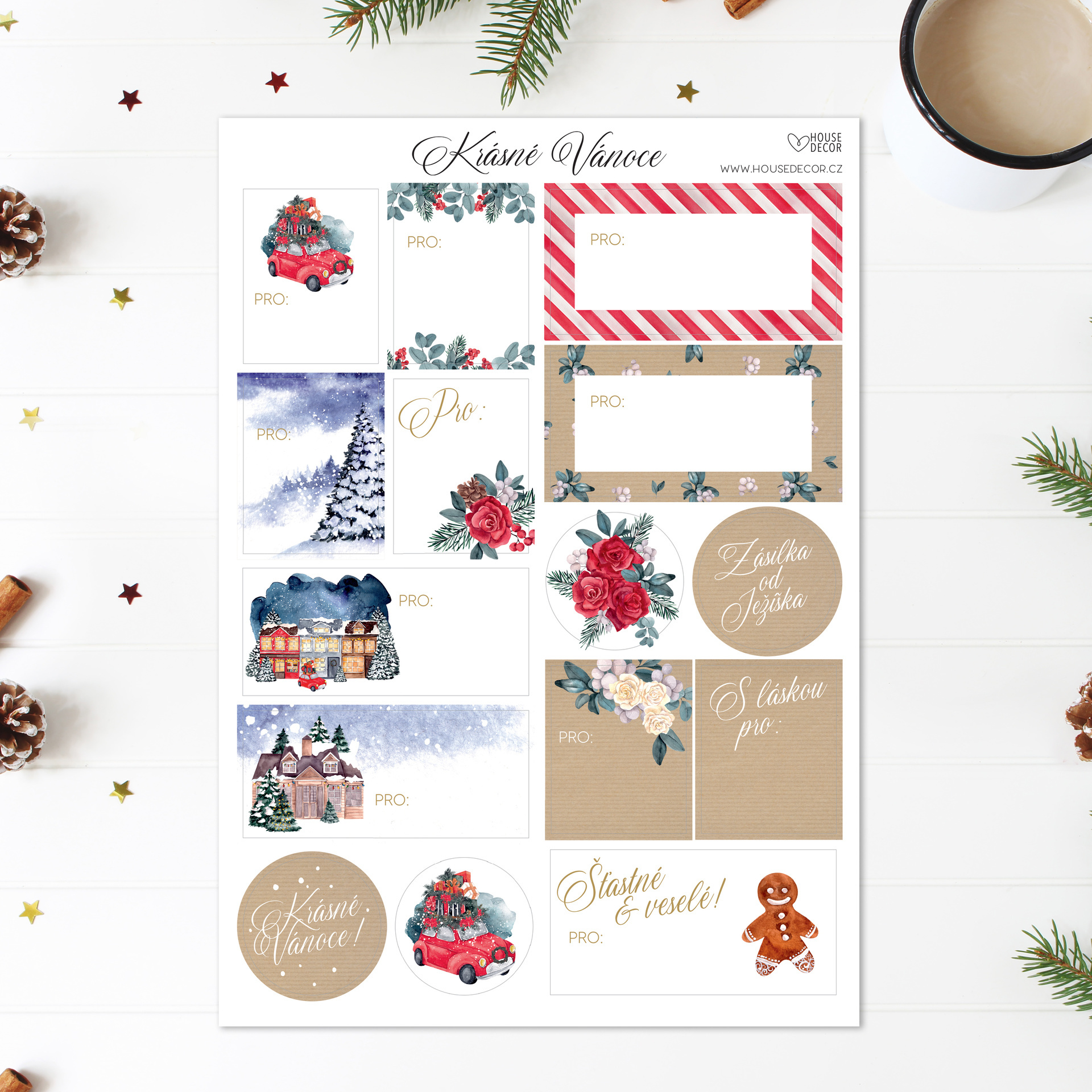 Vánoční ruch v plném proudu, balení dárků, ale který je který? Ozdobte si své dárky těmito praktickými a přesto krásnými samolepkami, které ulehčí balení i rozeznávání dárků!velikost: arch A4*Kvalitní tisk s originálními motivy Housedecor.