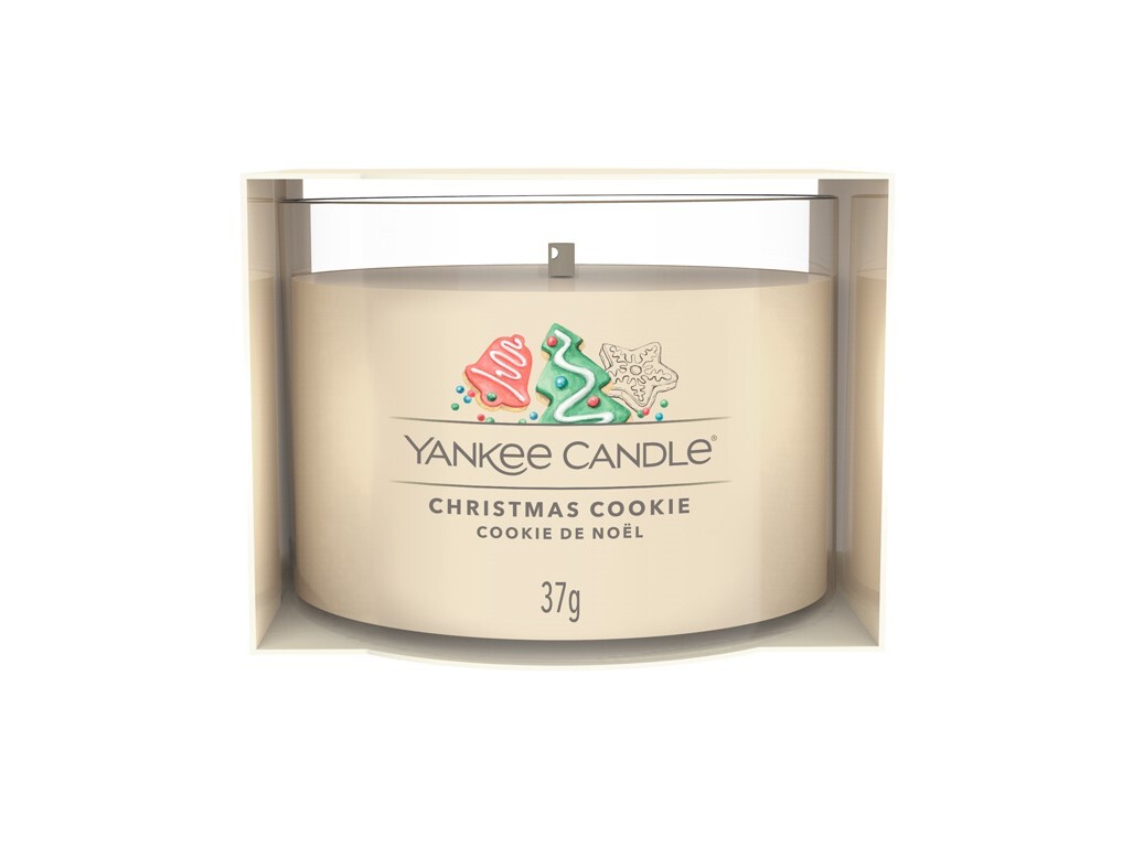 Yankee Candle Christmas Cookie votivnící svíčka je máslově bohatá, vanilková vůně sladká jako sváteční cukroví. Poznámky k vůni: Vrch: Krémová vanilková lusk Střed: muškátový oříšek, skořice, cukr Základ: vanilka, máslo, pečené tóny Specifikace Doba hoření: 7-10 hodin. Vosk: Hladká směs sójového vosku, která poskytuje čisté a konzistentní hoření. Vůně: Prémiové kvalitní ingredience, které vytvářejí výrazné skutečné vůně Nádoba: Nechte vosk vaší svíčky přidat barvu do vašeho prostoru s tímto mini designem z čirého skla. Knot: 100% přírodní vlákna, přísně testována pro nejlepší možné spalování. Hmotnost: 27g