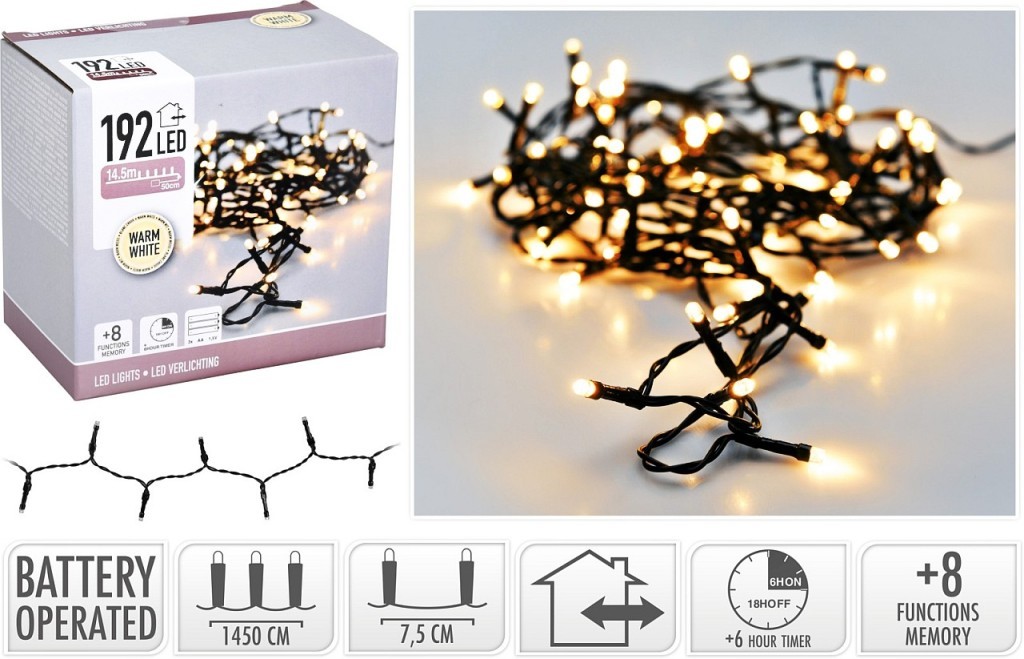 Vánoční světelný řetěz teplá bílá 192 LED / 14,5 m