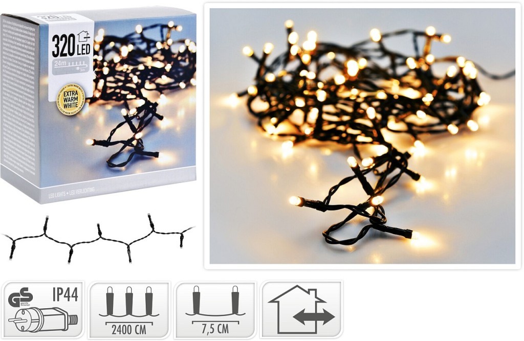 Vánoční světelný řetěz teplá bílá 320 LED / 24 m