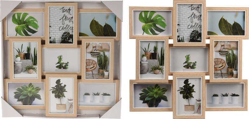 PHOTO FRAME COMBINATION MDF, SIZE FRAME 445X35X445MM, SIZE INSERTS 9X: 10X15CM. EACH PIECE SHRINKWRAPPED. EACH BOX WITH STICKER BARCODE ON BACKSIDE/ 460X460X40MM, Display Box / CFT 2,05,(6.901/40ft HQ) číst celé