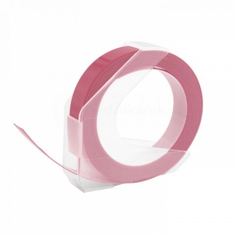 Dymo Omega, 9mm x 3m, bílý tisk / růžový podklad, kompatibilní páska