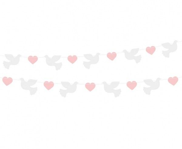 Girlanda papierowa Gołąbki różowe serduszka 150cm
