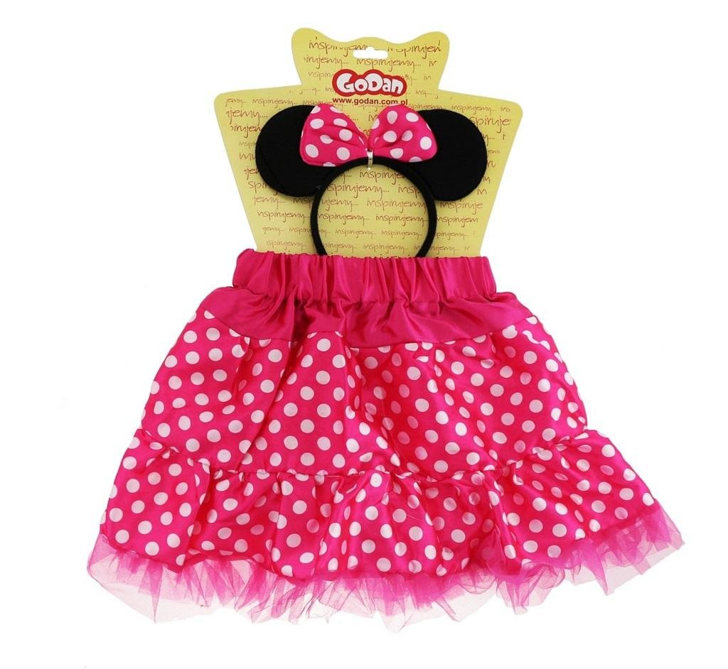 W skład zestawu wchodzą: spódniczka z gumką w pasie oraz opaska z kokardą i uszami.
