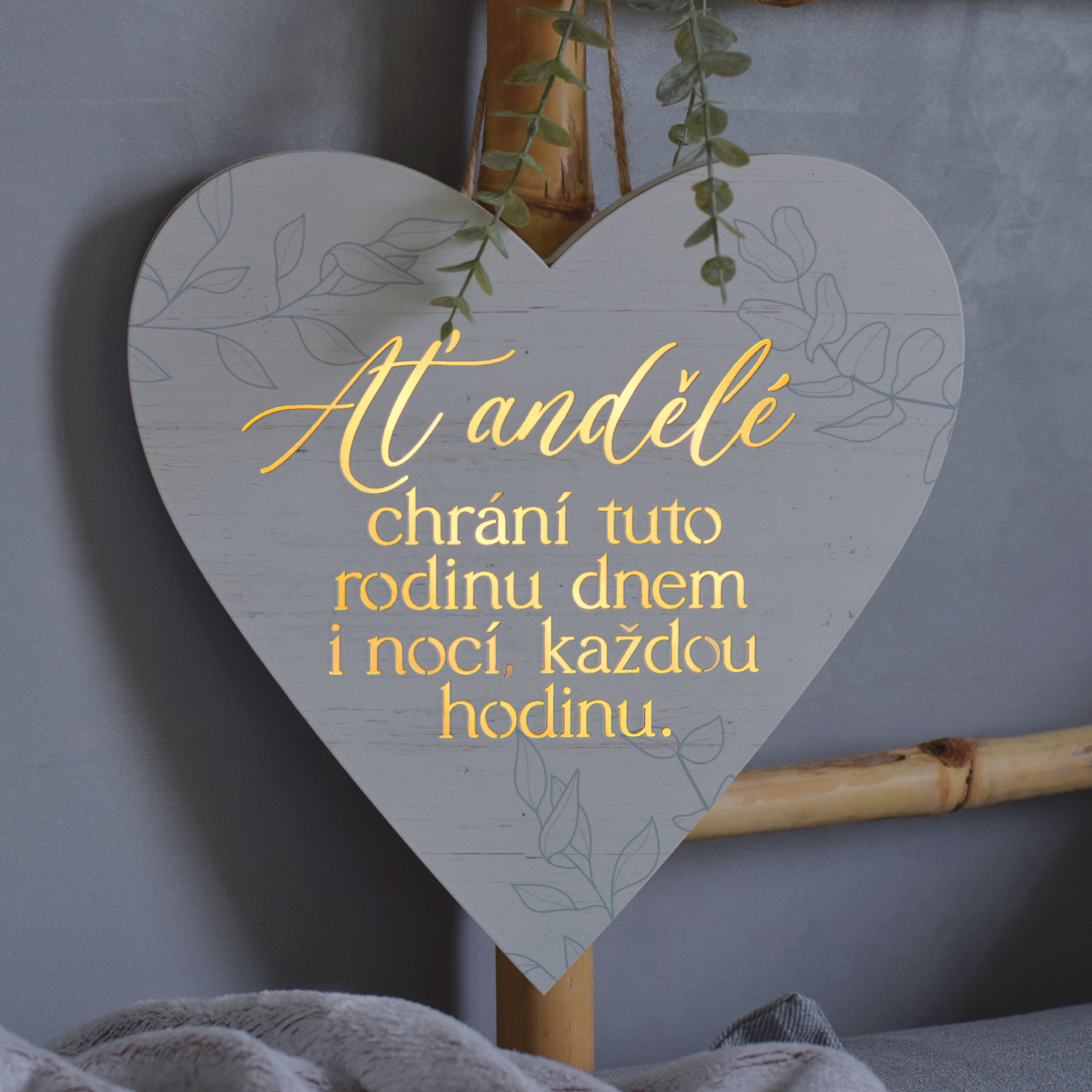 LED závěsné srdce XXL - Ať andělé chrání tuto rodinu
