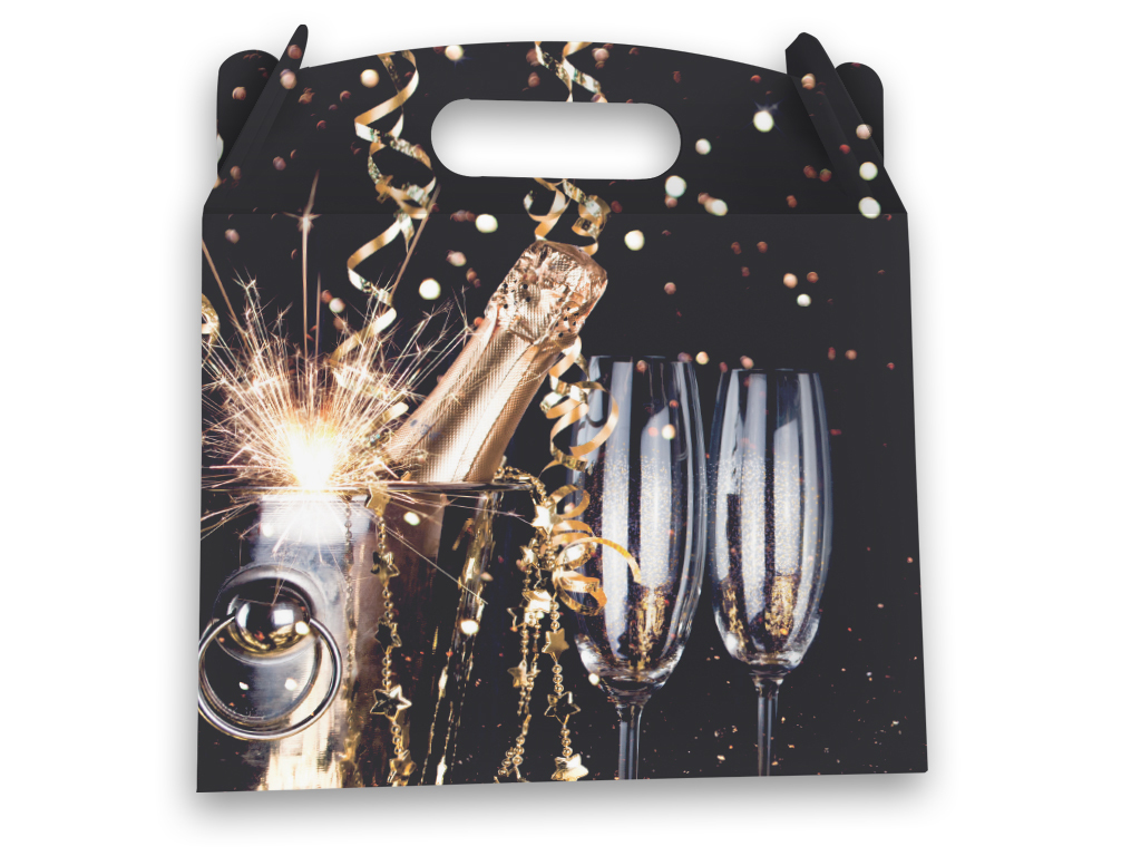Silvestrovský box plný netradičních dobrot jistě překvapí a potěší každého hostitele! S Rumíky a Giníky si můžete užít zábavu během večera, k tomu uzobávat arašídy a luxusní kávička s příchutí Šampaňského a Jahod šampaňském pak přijde vhod ráno po probdělé noci jako životabudič ;)