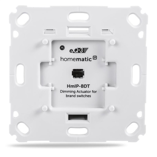 Stmívací akční člen (HmIP-BDT) se montuje do standardní zápustné krabice pod omítku spřipojením do sítě 230 V. Bezdrátová komunikace nabízí možnost instalace bez potřeby druhotné kabeláže. To znamená, že akční člen lze umístit v místě připraveného nebo stávajícího elektrického rozvodu sítě 230 V.