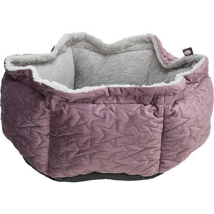 Xmas - Kulatý pelech ESTELLE 50 cm, vysoký okraj, samet/plyš, berry/šedá