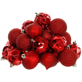 Sada obsahuje 30 kusů vánočních ozdob v teplé, klasické červené barvě, která nikdy nevyjde z módy. Díky několika různým designům se snadno přizpůsobí jakémukoliv stylu vaší vánoční výzdoby. Každá ozdoba je zhotovena z odolného materiálu, což zajišťuje dlouhou životnost a možnost opakovaného použití v dalších letech. Velikost ozdob je ideálních 6 cm - perfektní pro zdobení stromku i dalších dekorací v domácnosti.