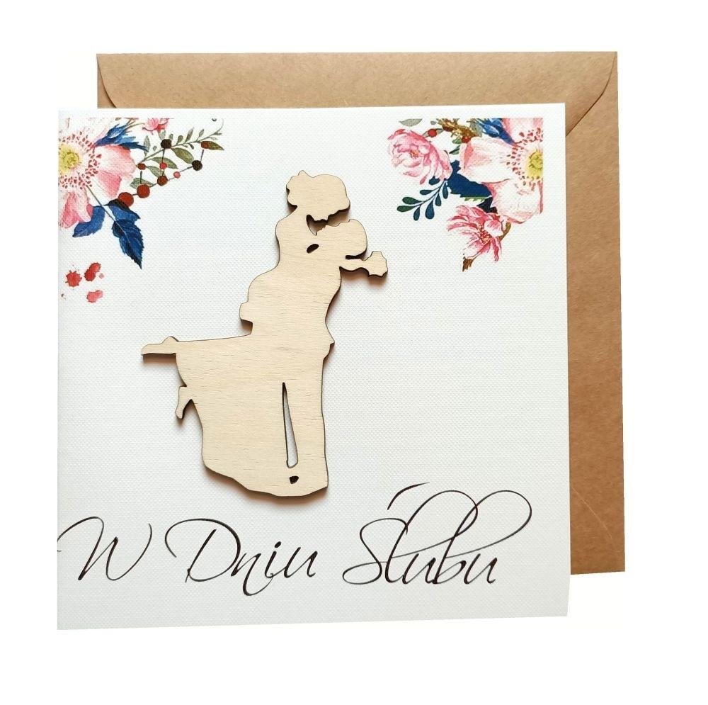Kartka okolicznościowa z okazji Ślubu o treści: Niech los zawsze ma Was w swojej opiece, A radość, która towarzyszy Wam tego dnia, Niech pozostanie w Waszych sercach przez długie lata. Wiele szczęścia i radości w Dniu Ślubu życzą?