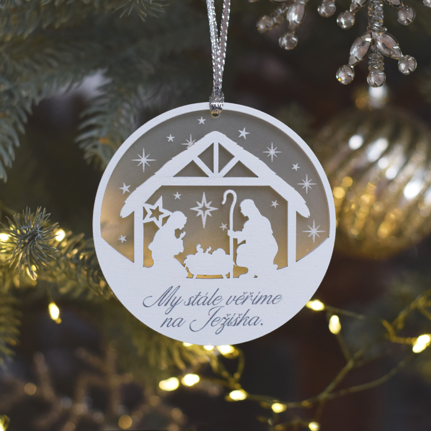 Vánoční kulatá ozdoba - Věříme na Ježíška