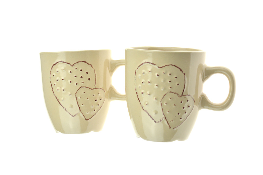 Set 2ks keramických šálků na kávu SIAKI srdce - Karamelově krémový