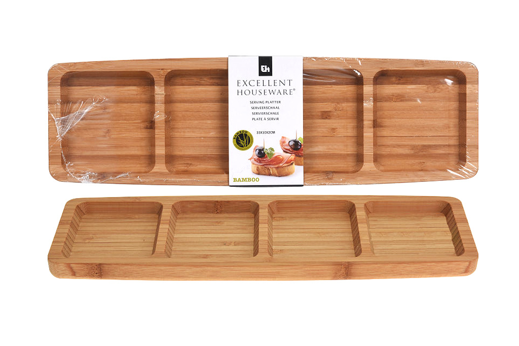 Bambusový podnos na občerstvení - 4 přihrádky 8719202214093
