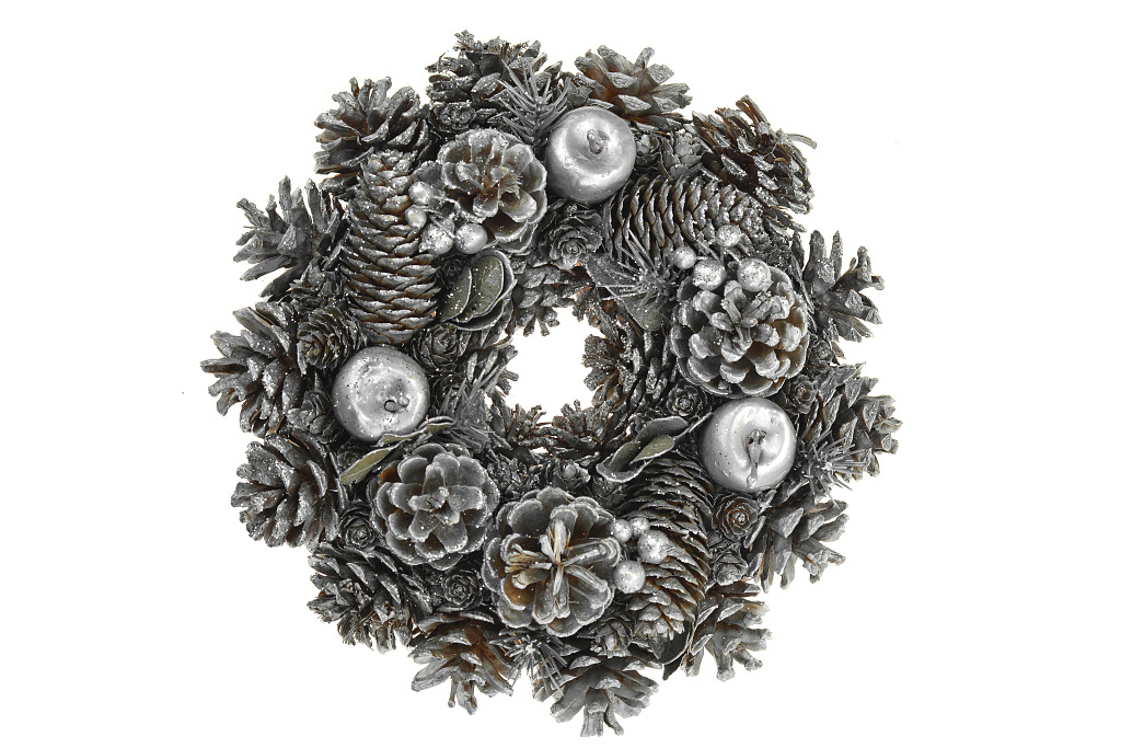 Vánoční věnec (25cm) - Stříbrný