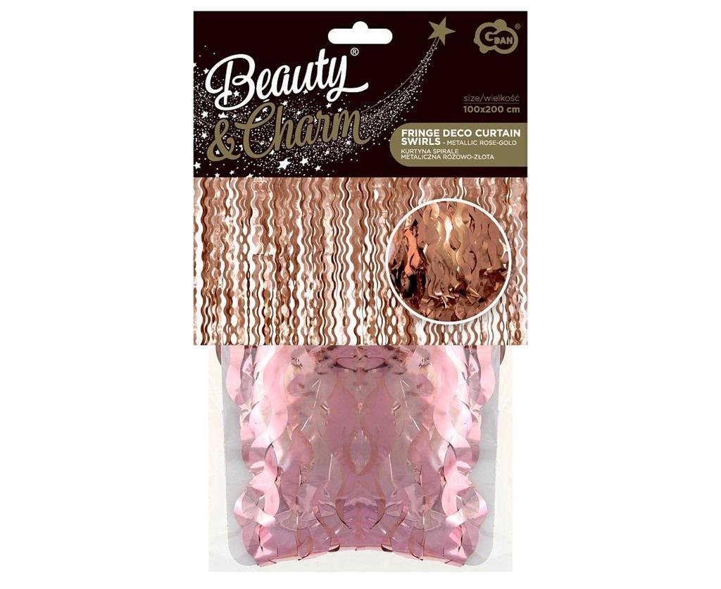 Party závěs metalický rose gold - spirály 100 x 200 cm