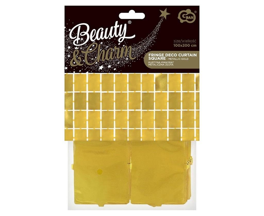 Party závěs metalický zlatý - kostičky 100 x 200 cm