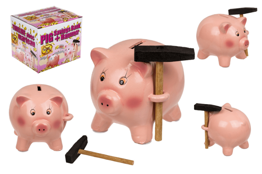 Prasátko má u sebe kladívko, se kterým po dospoření můžete rozbít jeho krustu aby se na vás vysypalo naspořené jmění. Jedná se o ideální dárek s nádechem žertu. Prasátko má rozměr přibližně 12cm.