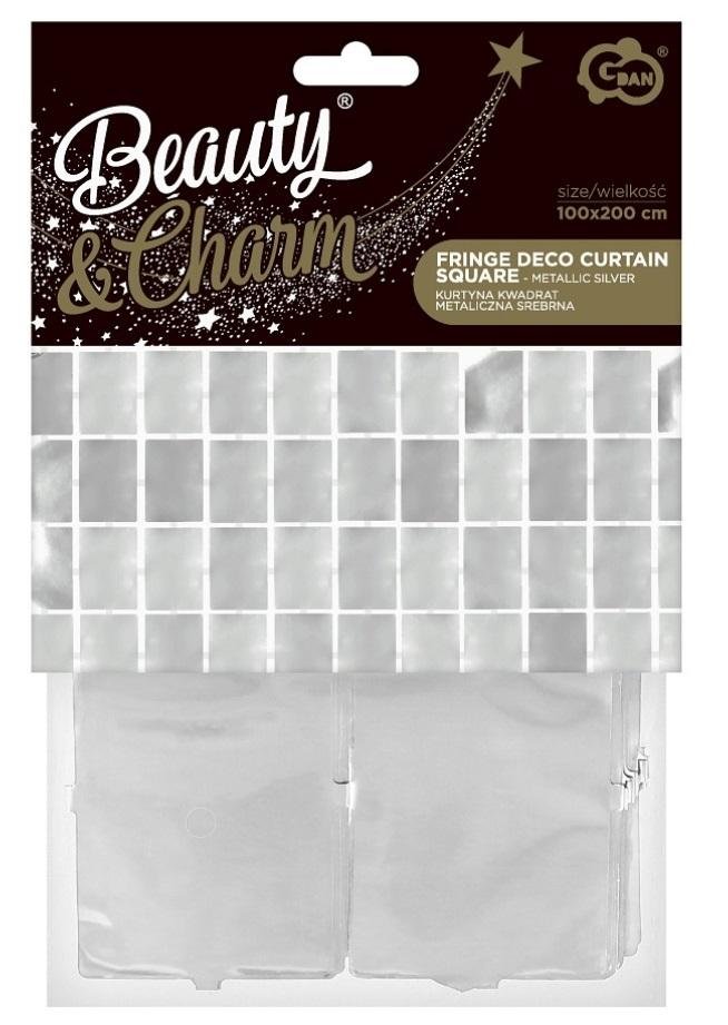 Party závěs metalický stříbrný - kostičky 100 x 200 cm