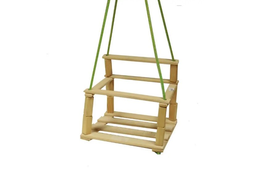 Dřevěná závěsná houpačka. Nosnost do 60 kg.Slovenský výrobek.Materiál - dřevo, nylonové provazy. Rozměry - 35x27 cm, délka lana 140 cm.